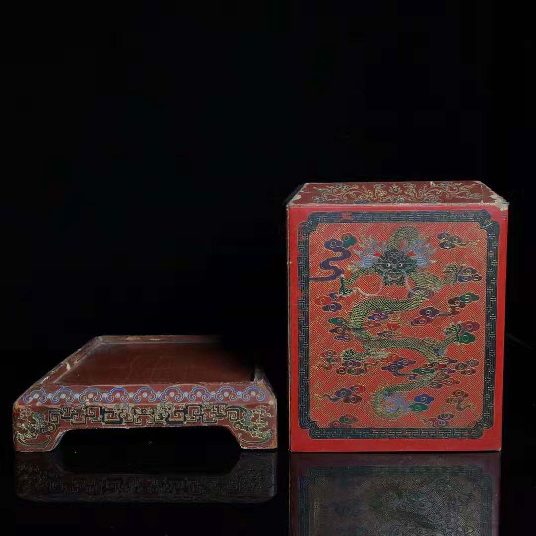 Folk collection of old lacquer seal box ornaments high 19 centimeters of rice