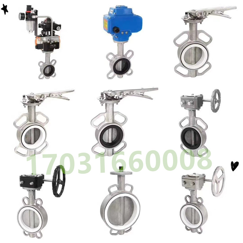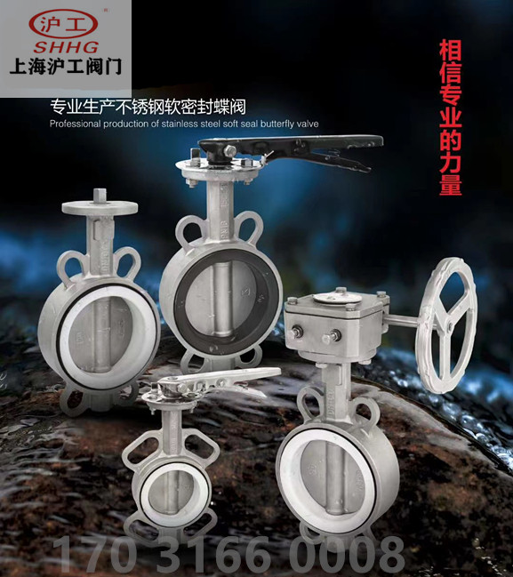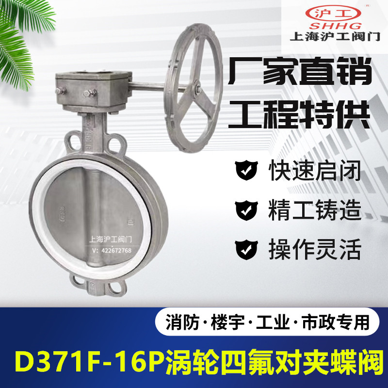 Shanghai Hugong Valve D371X F-10 16P 304 Stainless Steel Wafer Type Turbine Butterfly Valve PTFE DN100