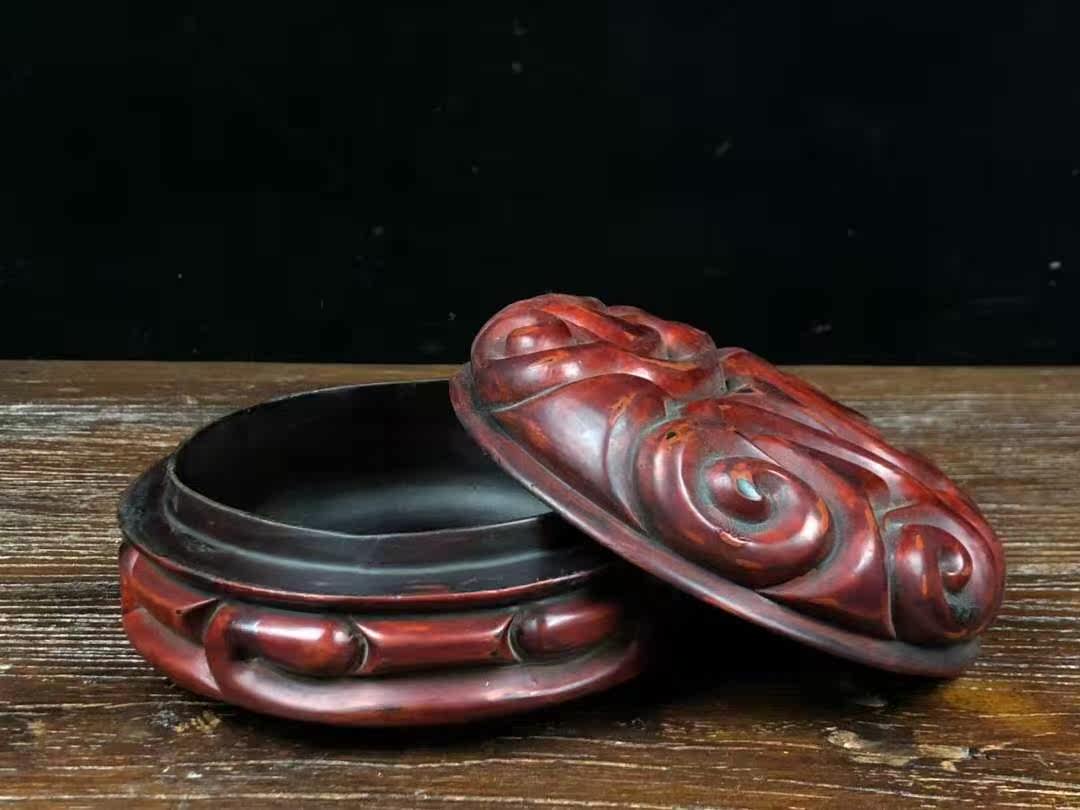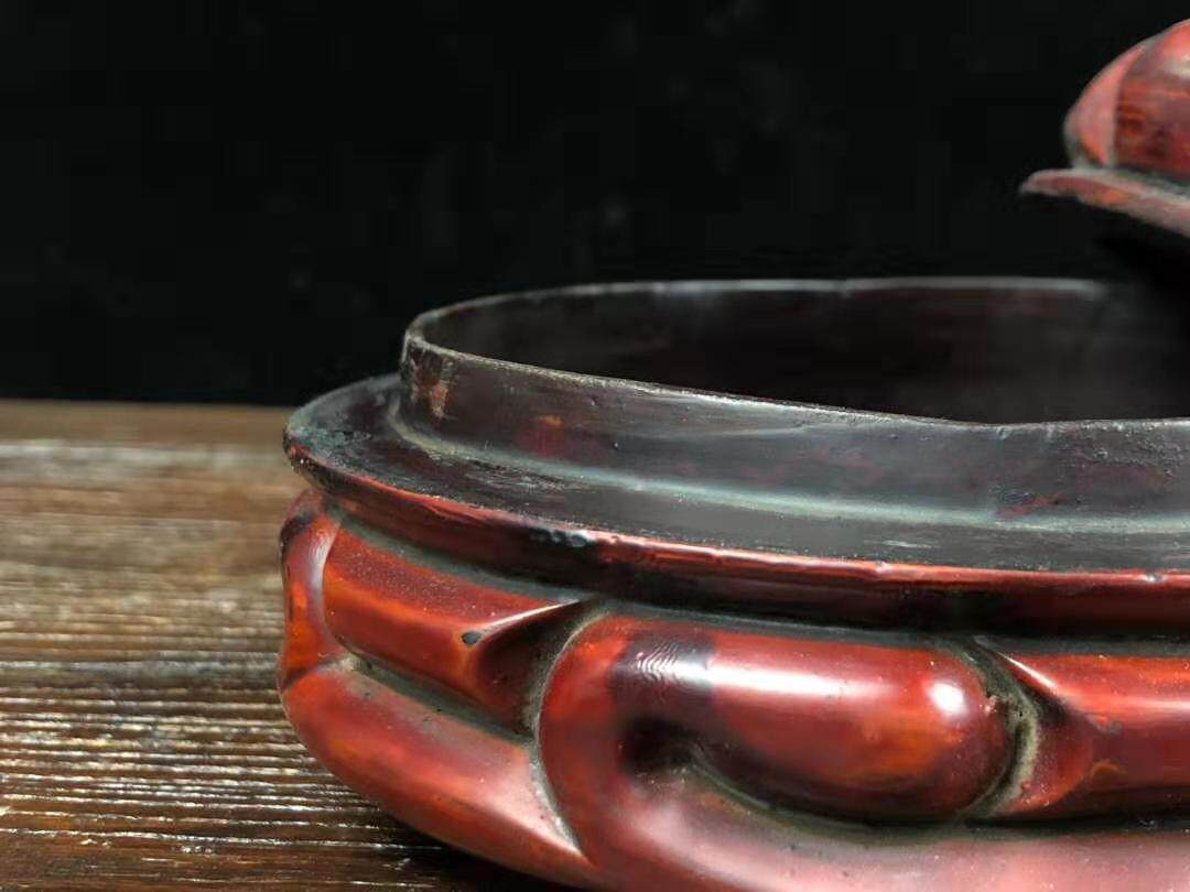 Folk Collection Old and red lacquered ware containing box pendulum with a diameter of 14 5 cm
