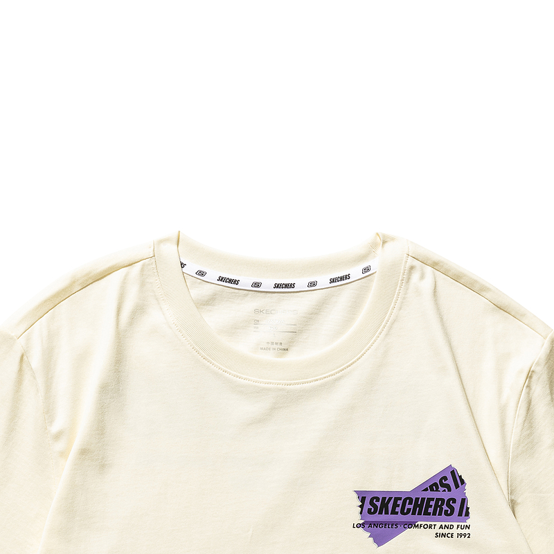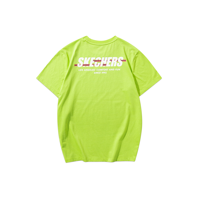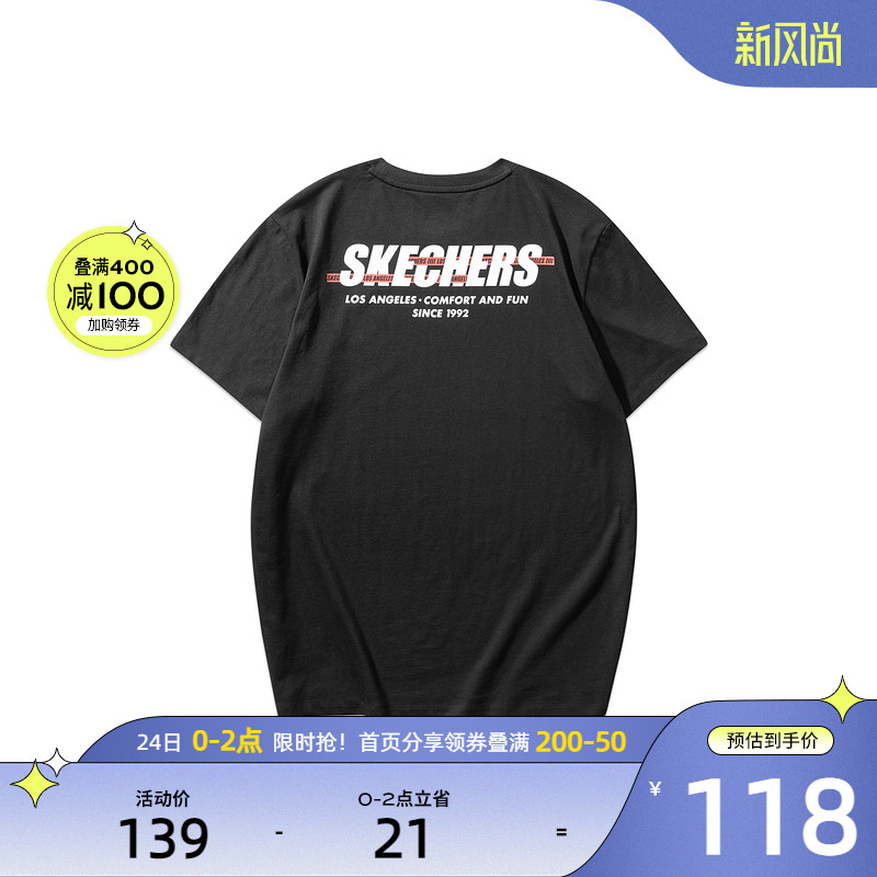 Skechers SKECHERS new men's and women's round-necked 100-sleeve knit comfortable solid color brand logo T-shirt