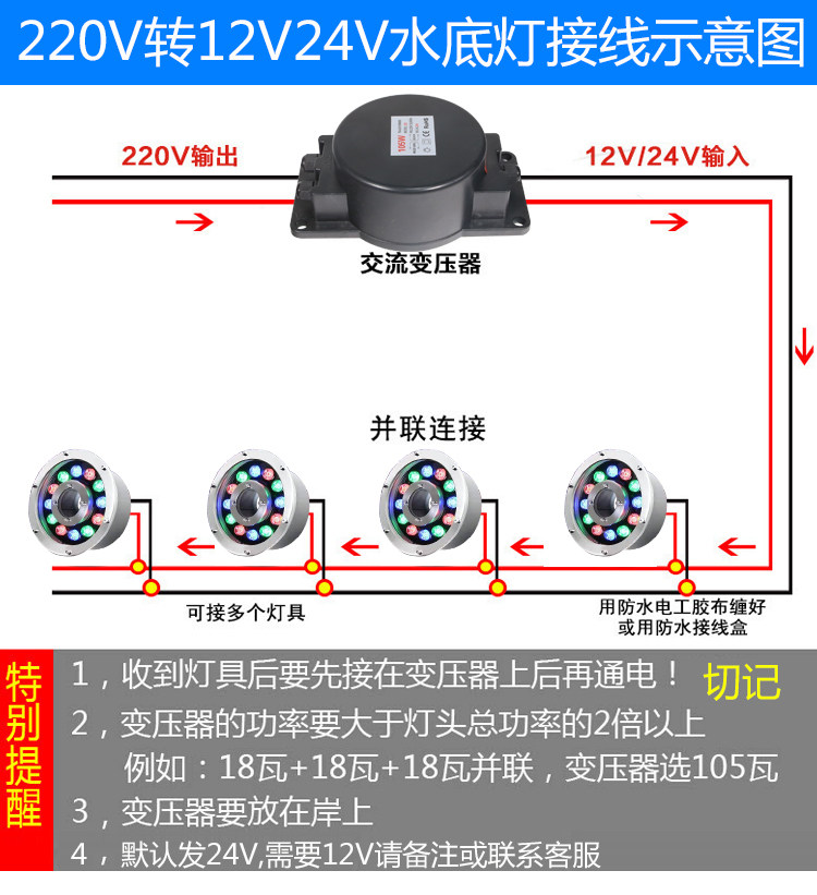 LED fountain lamp Underwater lamp special waterproof 12v24v transformer Underwater lamp power driver Outdoor
