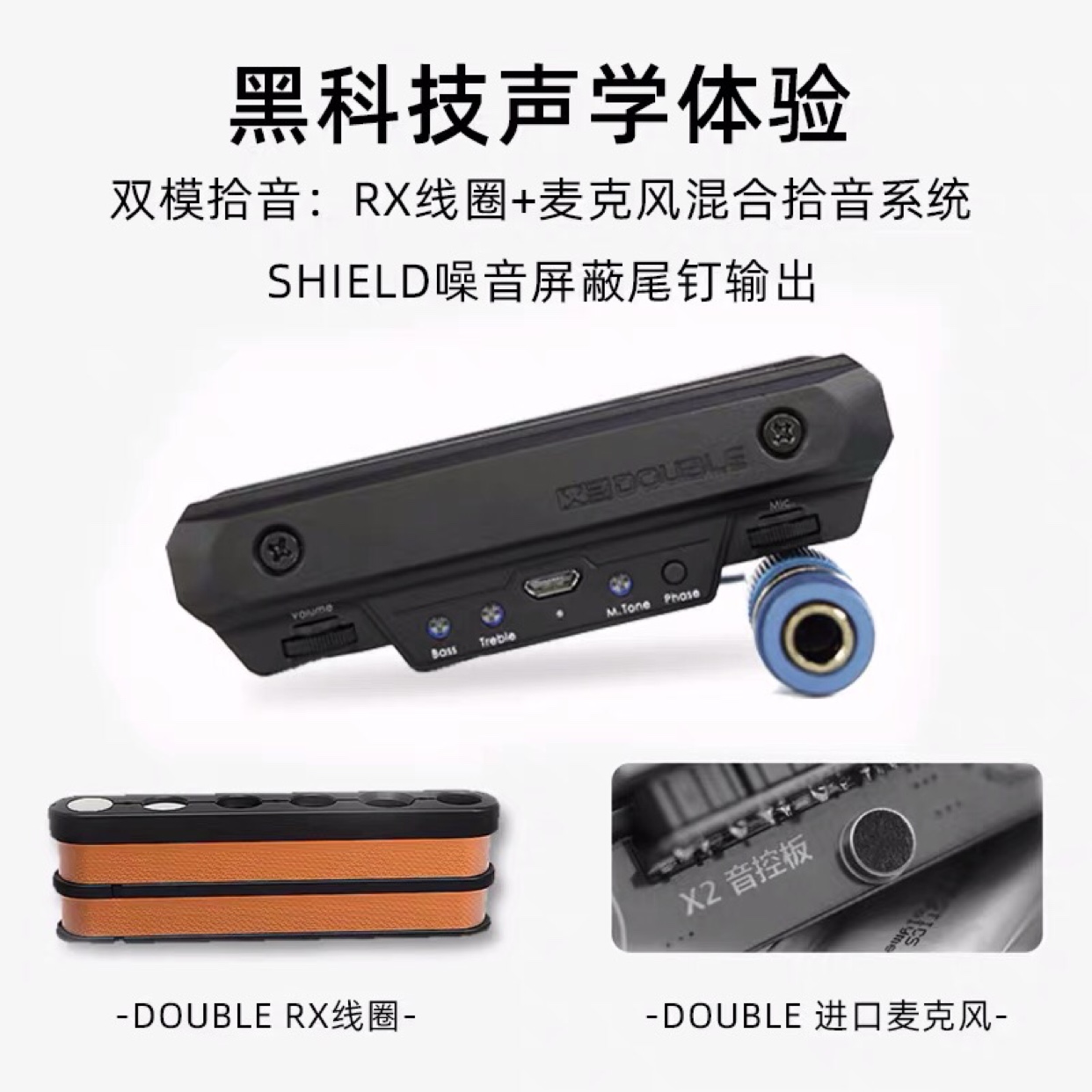 DOUBLE guitar pickup X0 board sound hole free opening wooden folk songs plus instrument recording wireless bluetooth x2 vibration