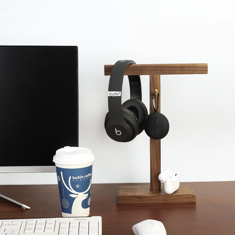 Solid wood creative headset rack Black walnut wood wearable headset rack Multi-function universal gaming headset bracket