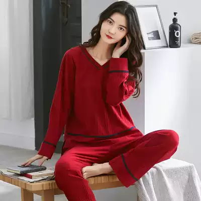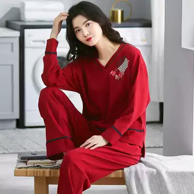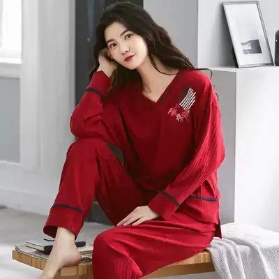 Pajamas women's spring and autumn pure cotton long-sleeved Korean version of the large size casual suit loose autumn and winter models can be worn outside home clothes