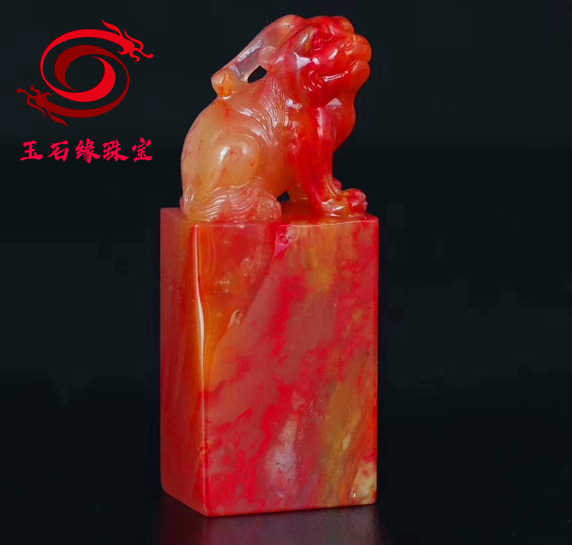 Northern Laotian Tianhuang Qiao-colored dragon purchase prosperous seal Pixiu hand piece jade seal printed Shoushantian yellow chicken blood ornament