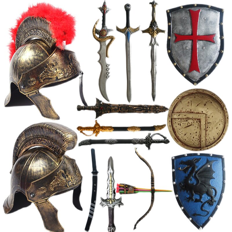 Red Crown Roman Safety Helmet Sapphire Sword Ancient Bronze Roman Safety Helmet Blue King Suit Adult Male Roman Samurai Adult Female Spartan Warriors