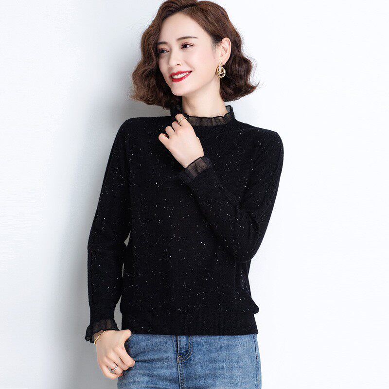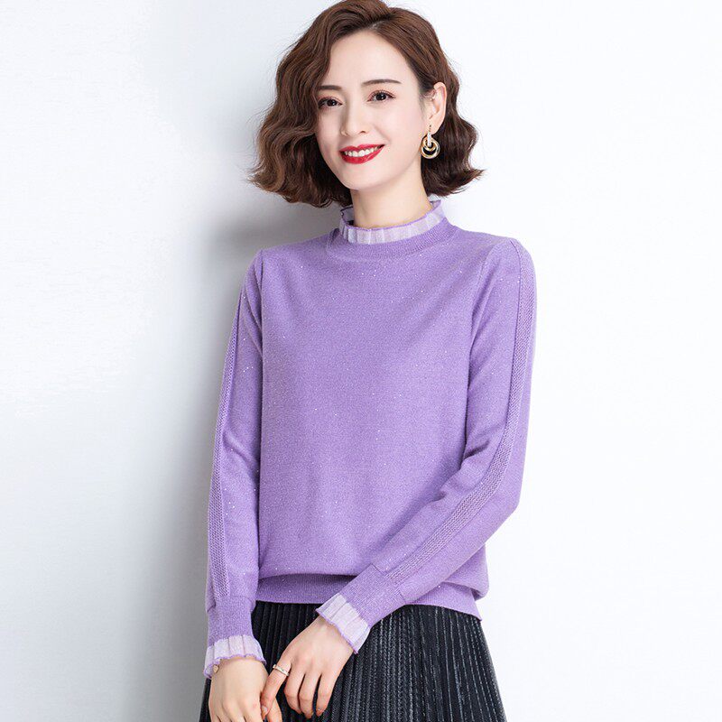 2022 New Sheep Sweatshirt Lady Sweater Agaric Side Lace Half High Collar Knit Undershirt Spring Autumn Foreign Pie