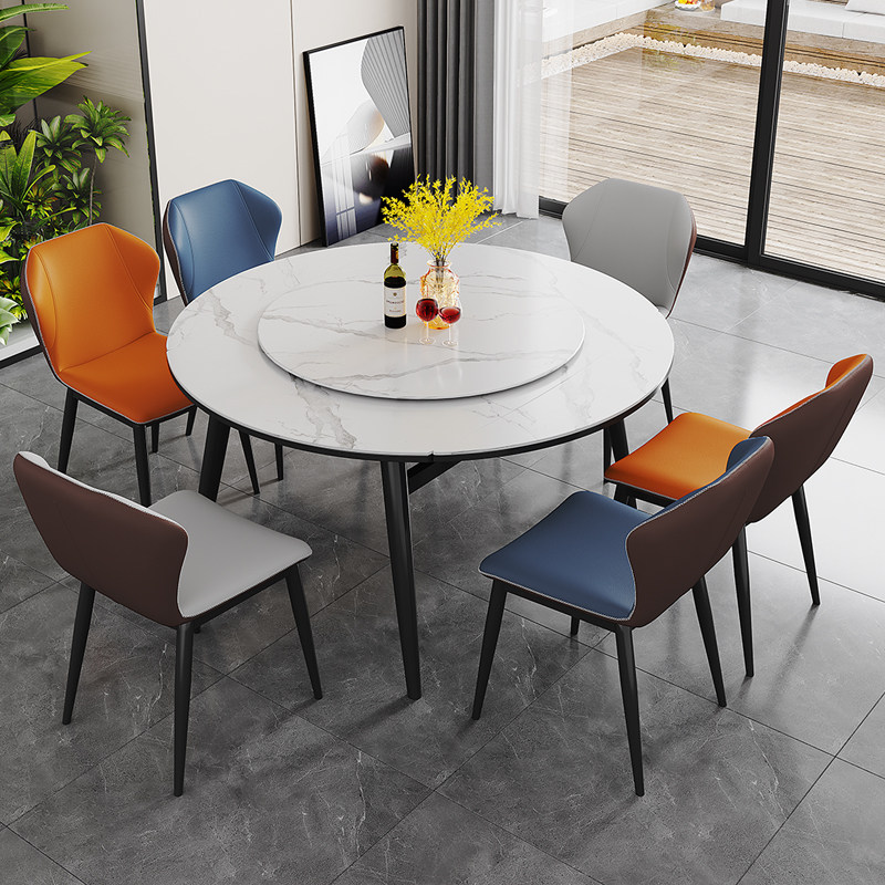 Solid Wood Rock Plate Table Variable Round Table Home Small Household Type folding dining table and chairs light and luxurious with turntable telescopic dining table