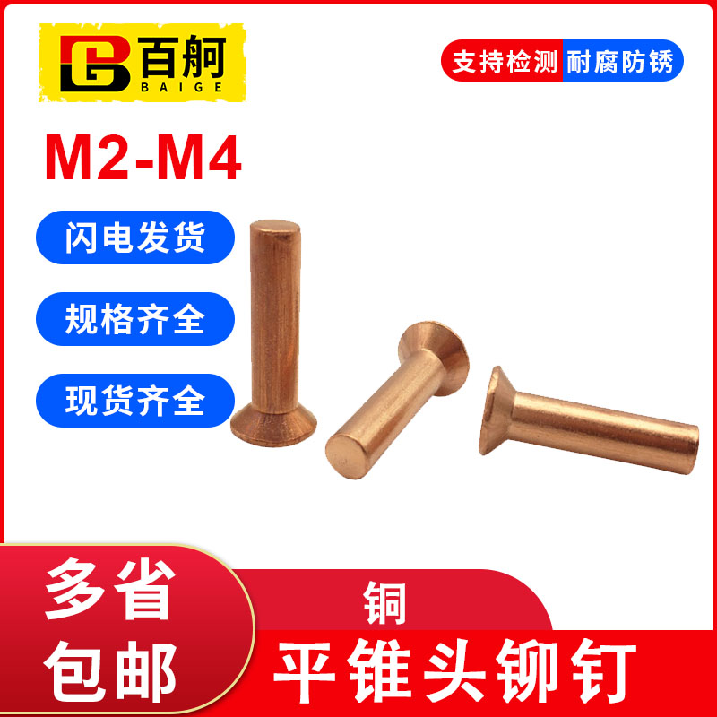 Copper countersunk tapping copper flat cone head rivet counter grub solid rivet M2M3M4
