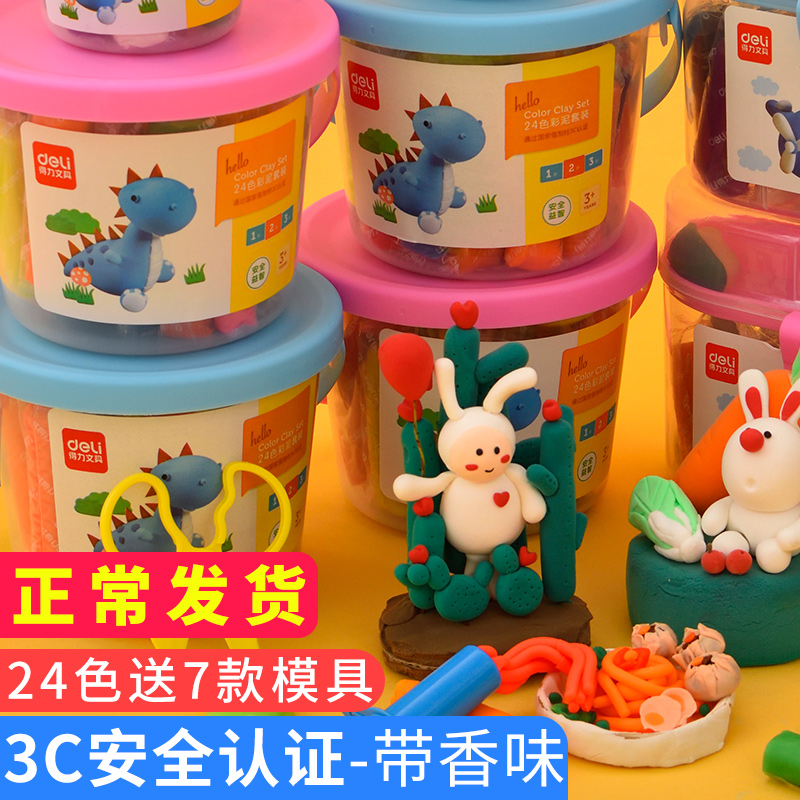 Deli plasticine primary school student non-toxic kindergarten non-toxic safety color clay handmade 12 colors 24 color mold set primary school students handmade kindergarten baby toy plasticine