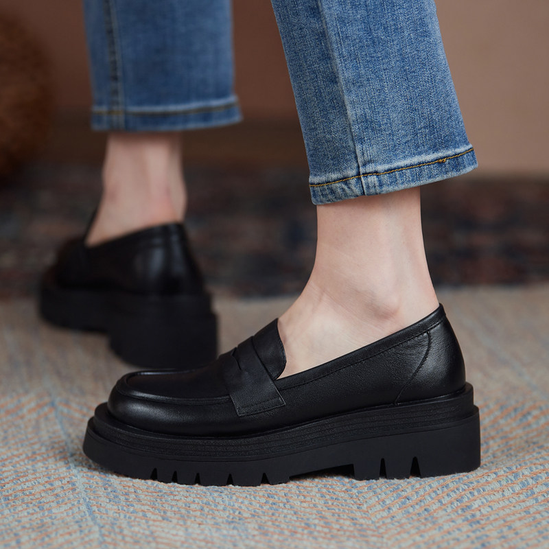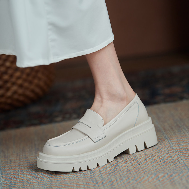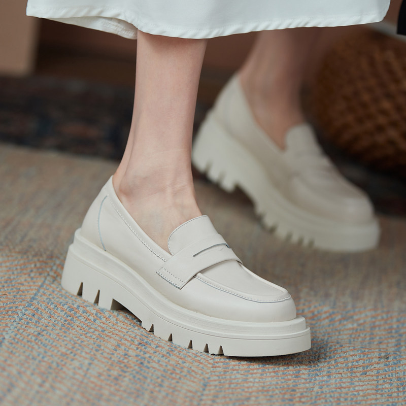 White thick bottom bag shoes women Inn wind small leather shoes comeback Gurlefoe One foot pedal genuine leather flat-bottomed large size women's shoes