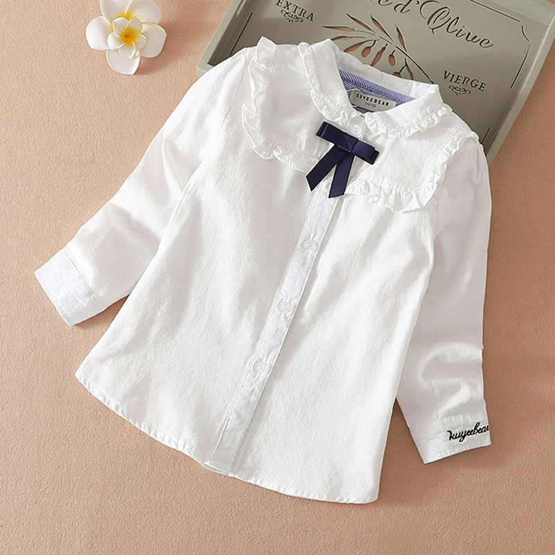 Girls' white shirt long-sleeved 2022 autumn new cotton children's shirt foreign style plus velvet thick girl top