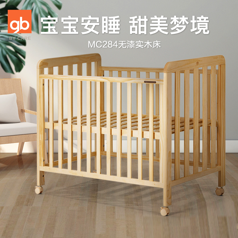 gb good baby crib stitching big bed solid wood baby newborn multifunctional pine children's bed stitching bb wooden bed
