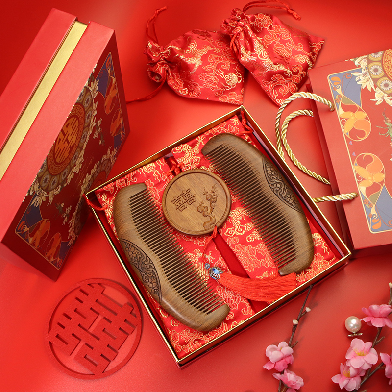 Mirror Comb Gift Box Set of a pair of wood comb Wedding Wedding and Dowry Bridal Bride Return Companion Gift girlfriends