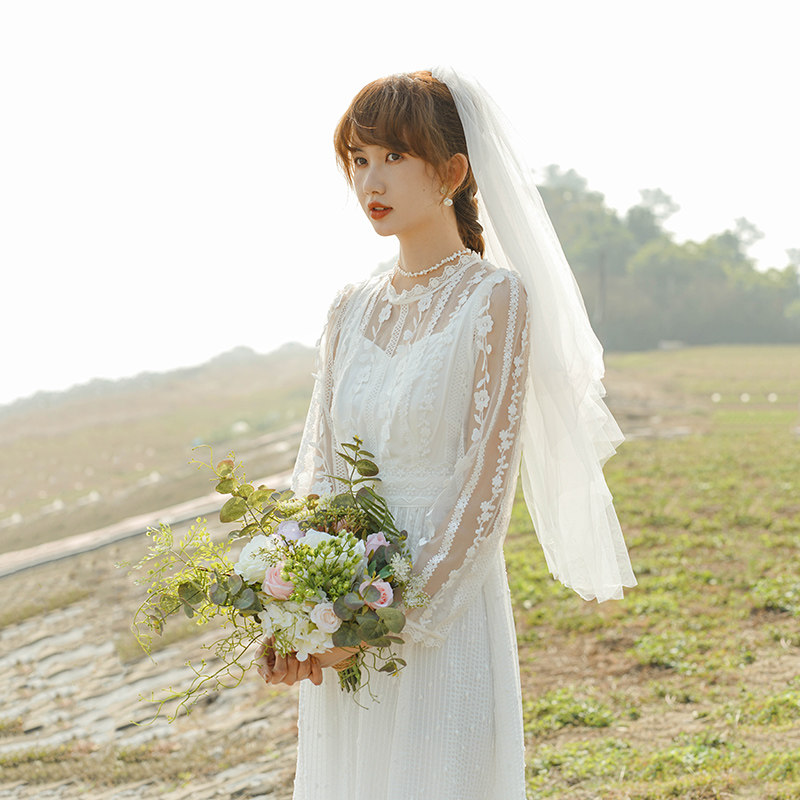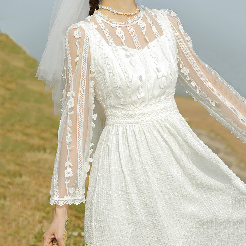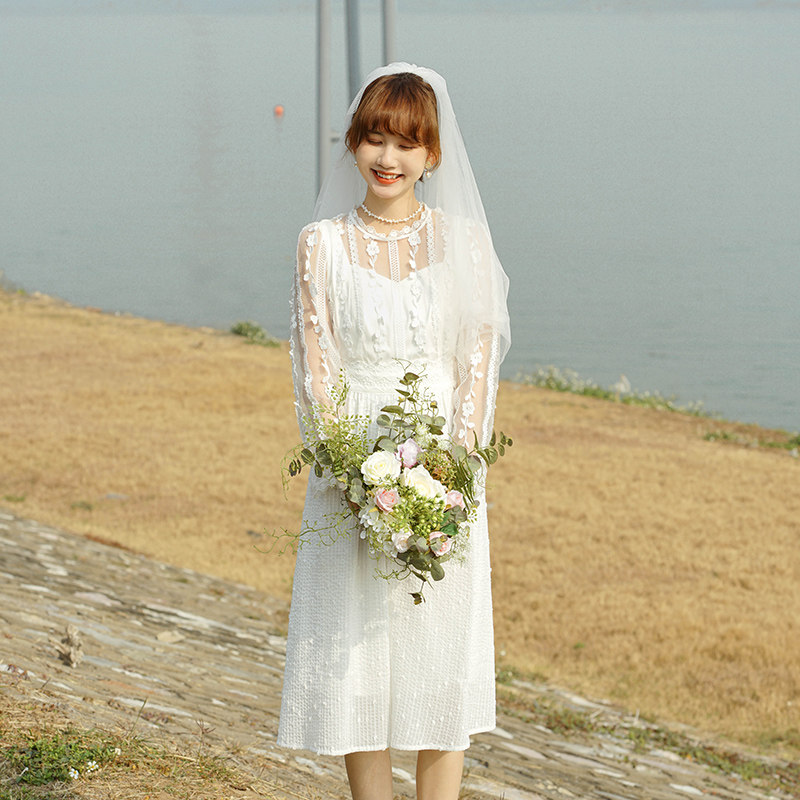 22 early summer new French style superfairy embroidered with slim cashew collar registration for small white ocean dress engaged light wedding dress