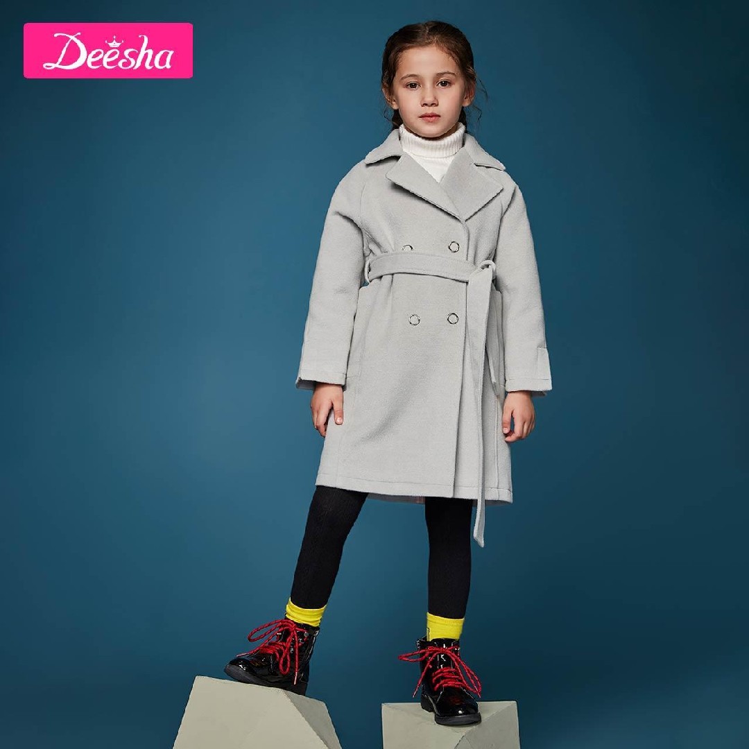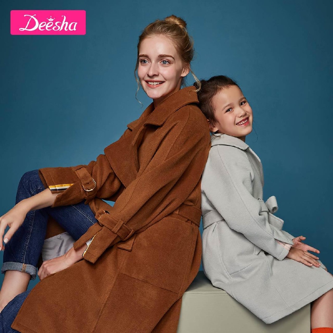 Deesha autumn and winter new girl baby parent-child coat girl solid color mid-length woolen coat coat