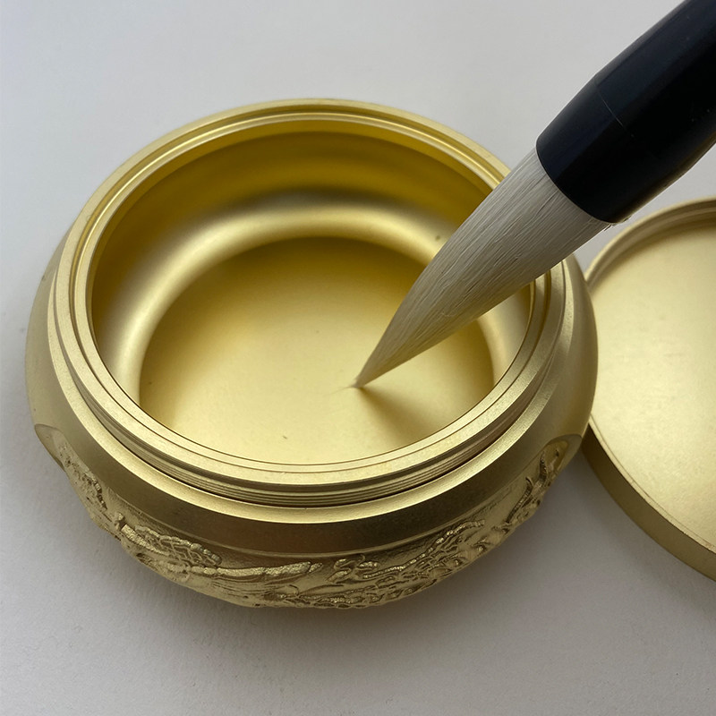 Pure copper ink cartridge Stationery supplies Multi-function ink cartridge with lid Carved Carved Dragon and Phoenix pattern calligraphy brush ink pool
