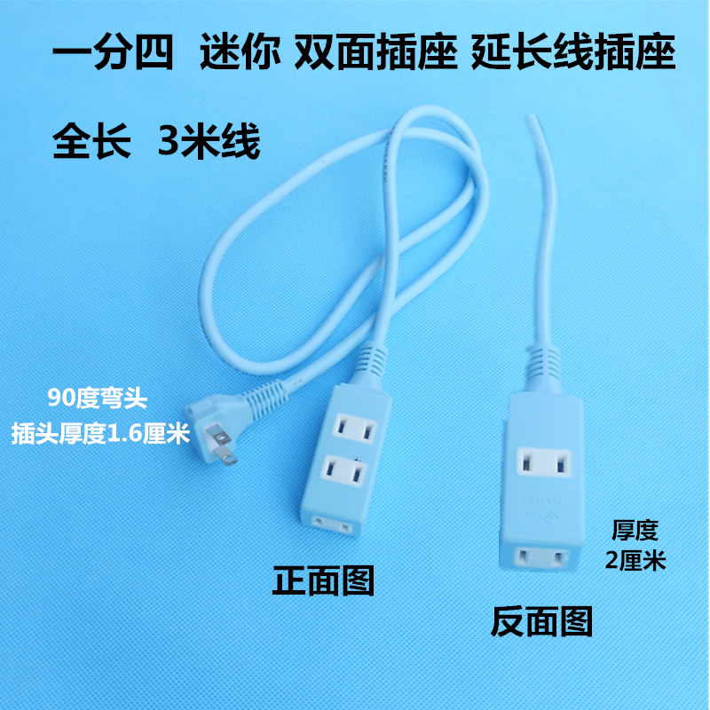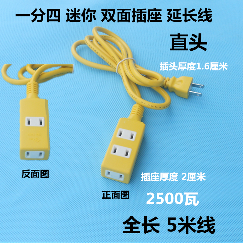 2500W two hole two plug one turn three one drag four creative small terminal board extension cord home extension 1 3 5 m line plug converter curved socket sofa TV headstand gap