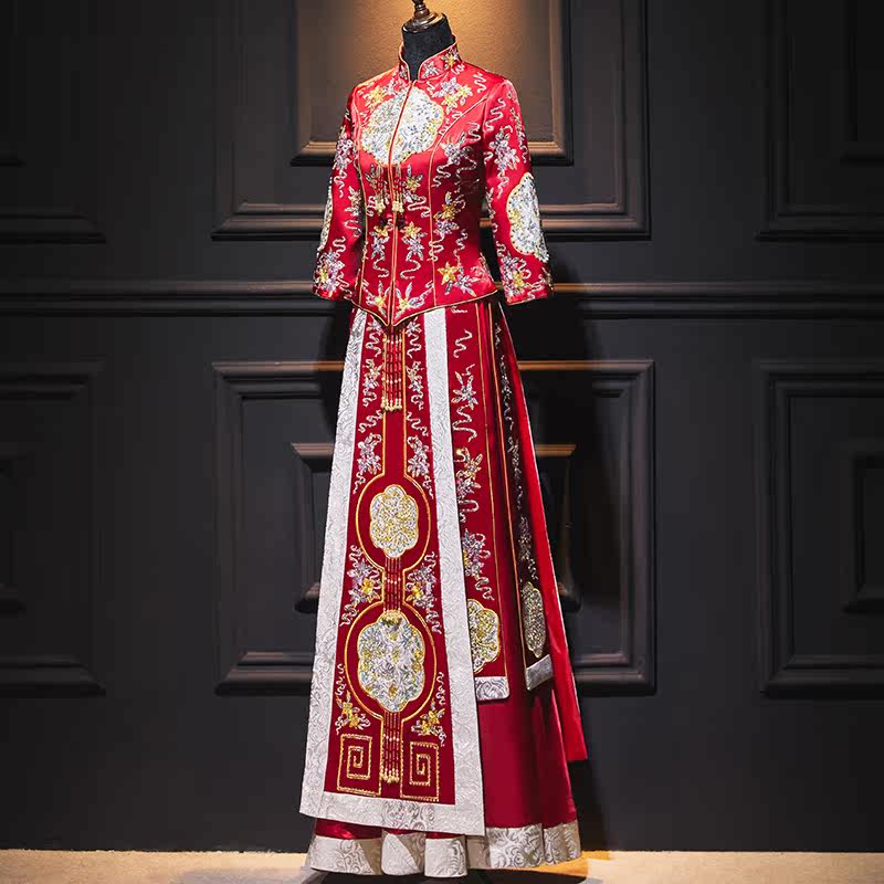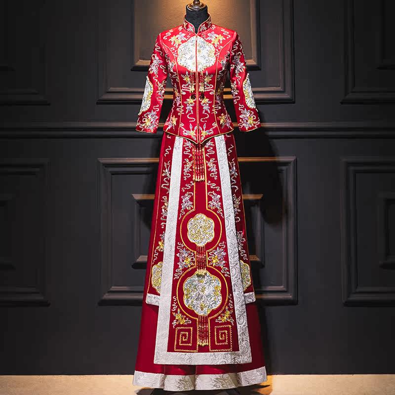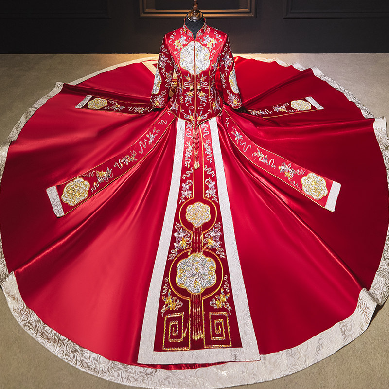 Chinese Xiu He dress 2021 new bridal wedding dress contrast color show thin dragon and phoenix jacket summer year spring show kimono