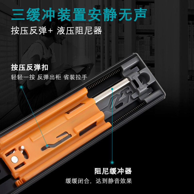 Kinfeli Three drawer side-mounted track rebound damping damper office desk guide track slide cabinet wardrobe