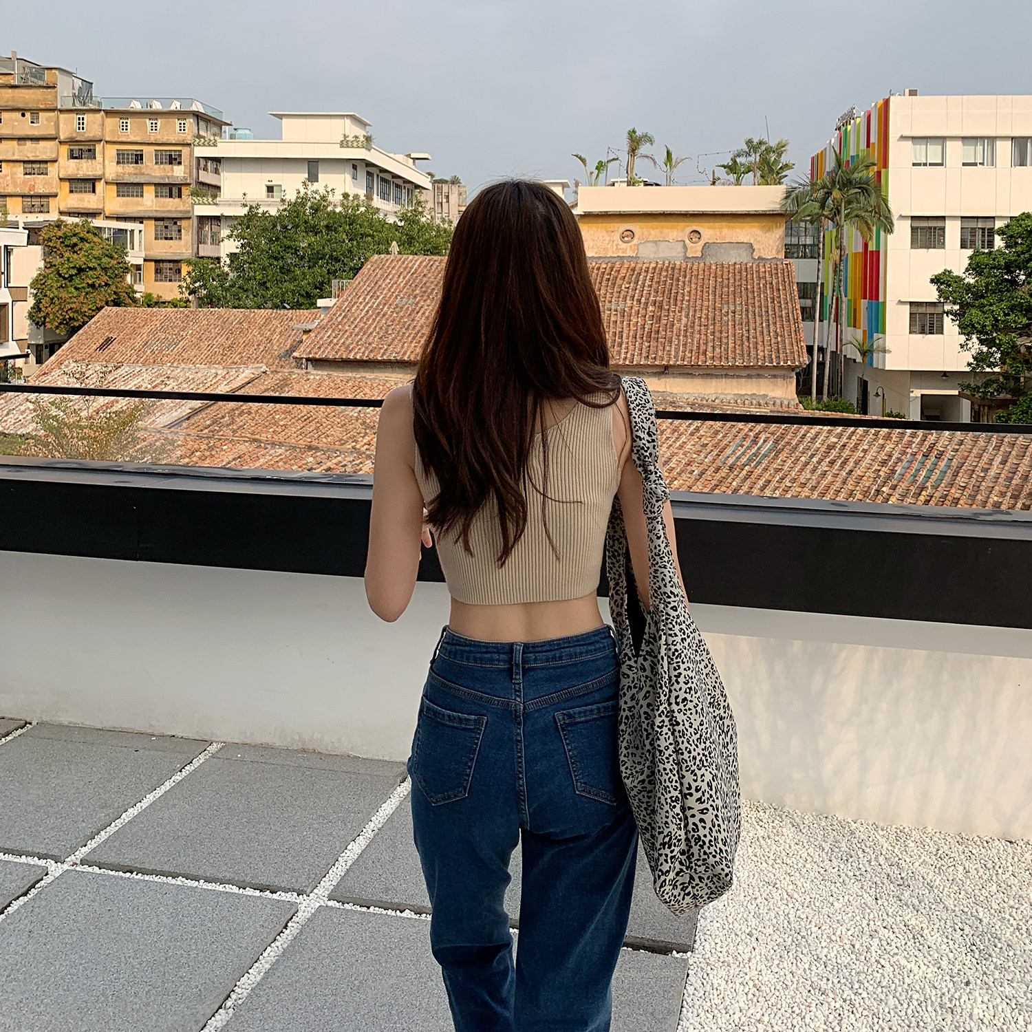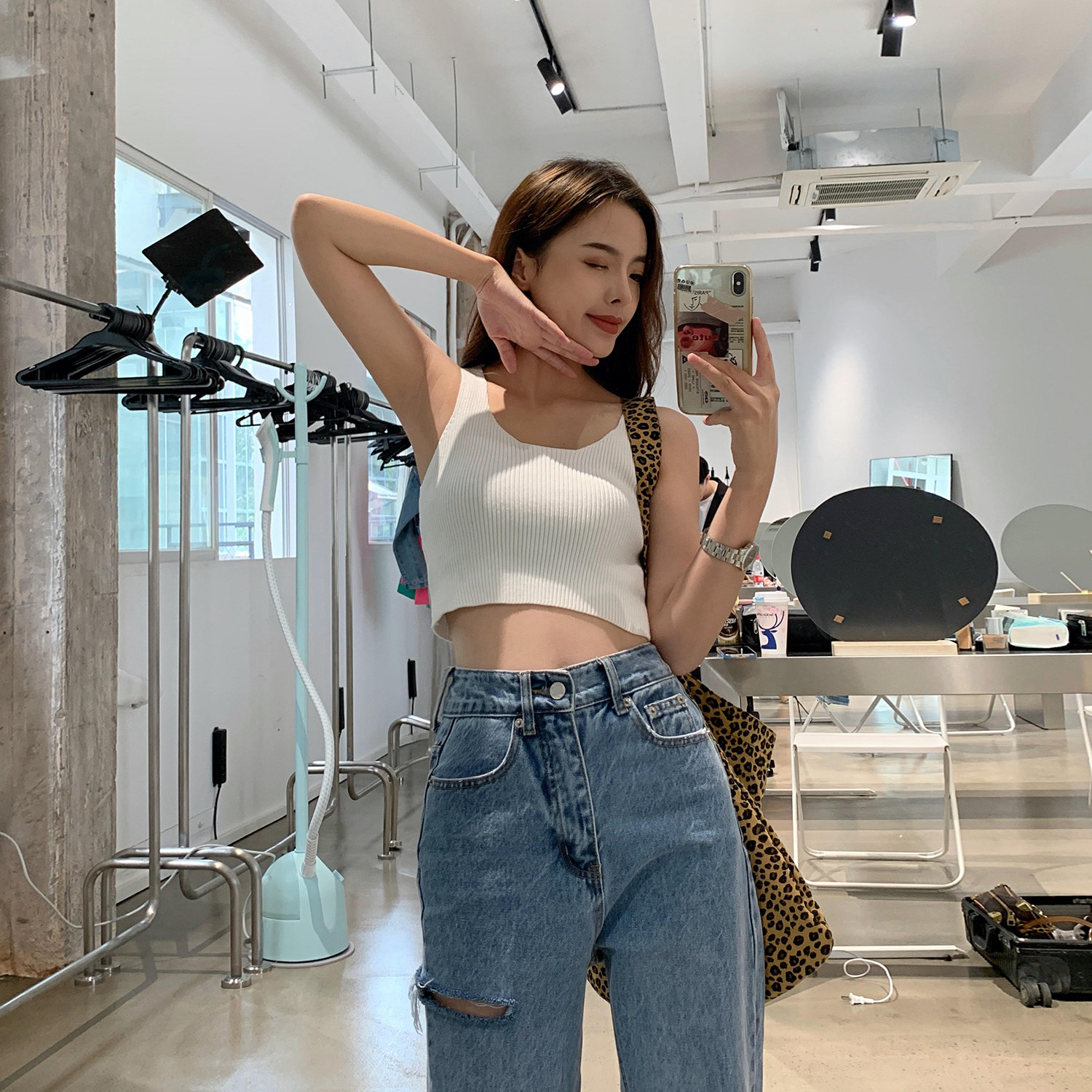 Chen Mifan white short slim camisole women's summer thin design sense niche exposed navel knitted top