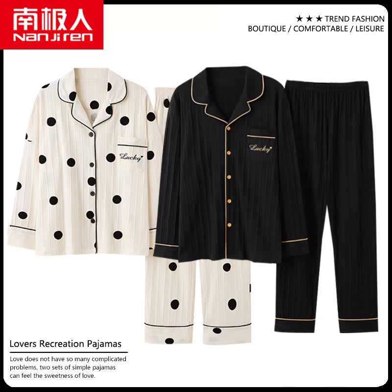 Antarctic couple pajamas men's and women's spring and autumn autumn and winter long-sleeved cotton 2021 new thin loose suit