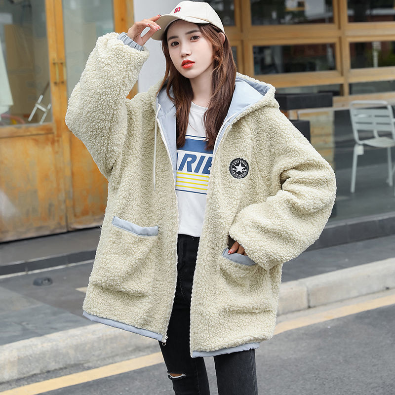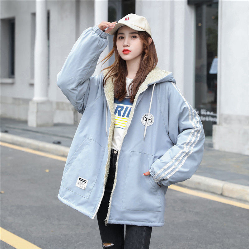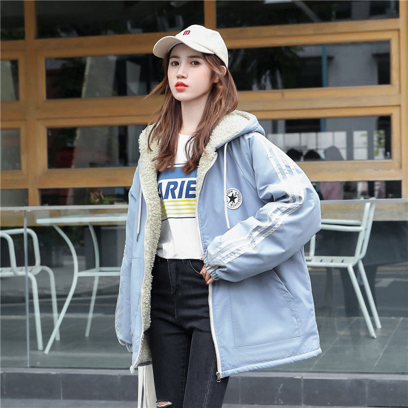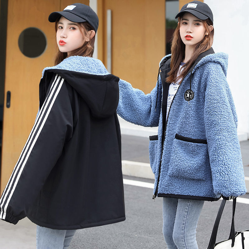 Double-sided lamb coat girls in winter new Korean Edition College wind cotton clothes student BF plus wool cotton clothes
