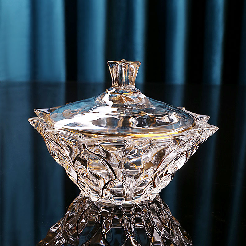 European modern creative depiction gold with lid crystal glass candy jar living room coffee table storage jar fashion ornaments