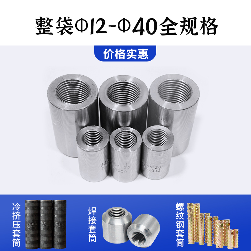 Reinforced straight thread connection sleeve front and back wire reducer joint 14 16 18 20 22 25 28 32 3640
