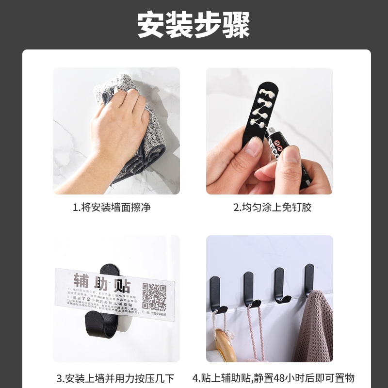 Free Punch Powerful Adhesive Clothing Hook Door Rear Wall-mounted Wall Hanger Dressing Room Towel Bearing Wall Wall Slime Hook