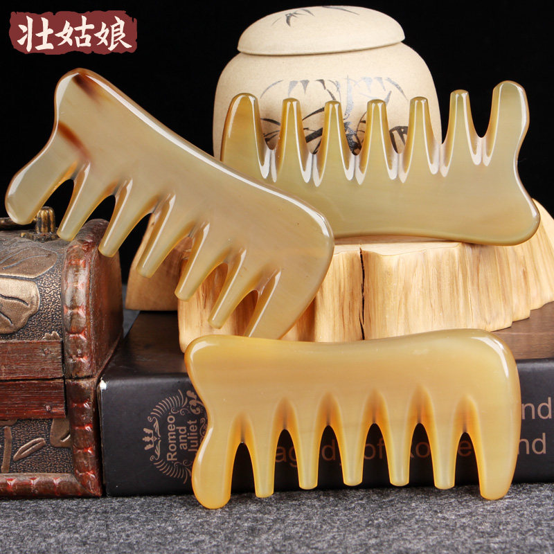 Natural white yak horn comb wide tooth massage comb Female anti-scraping head treatment hair loss scalp head meridian comb
