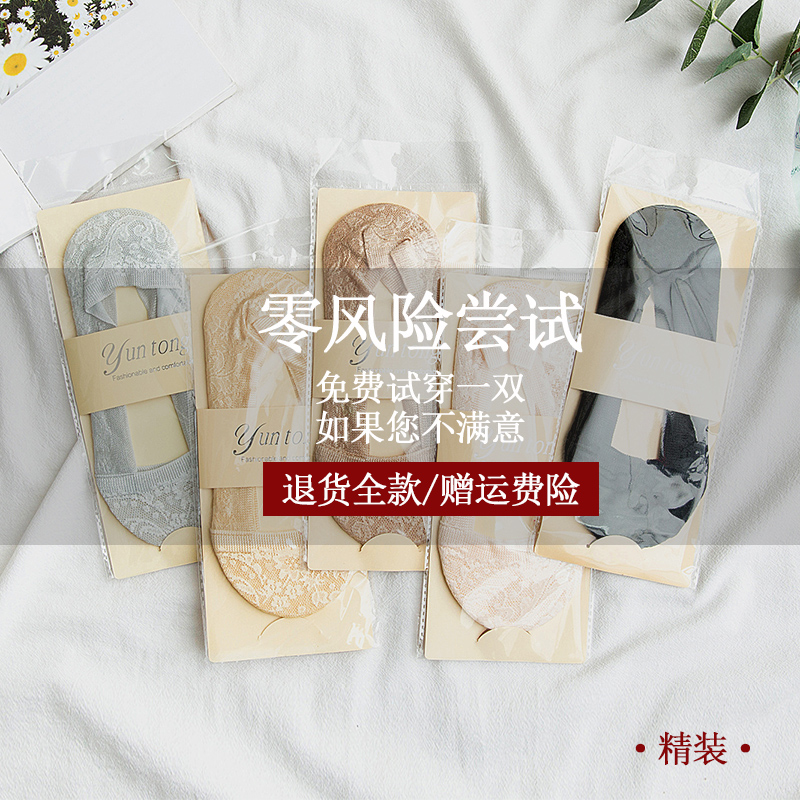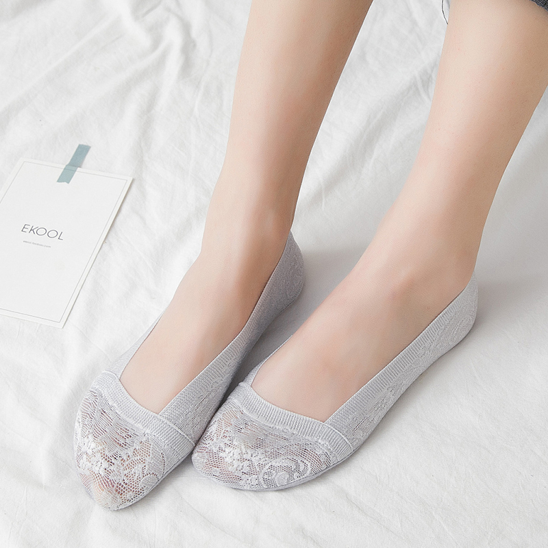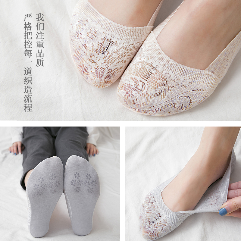 Satin lace socks women's spring and summer thin shallow mouth invisible boat socks silicone non-slip socks low-cut cotton socks