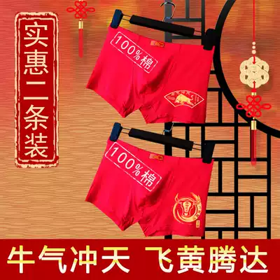 Red men's underwear cotton boxer plus size breathable cotton fat boxer pants are cow gift
