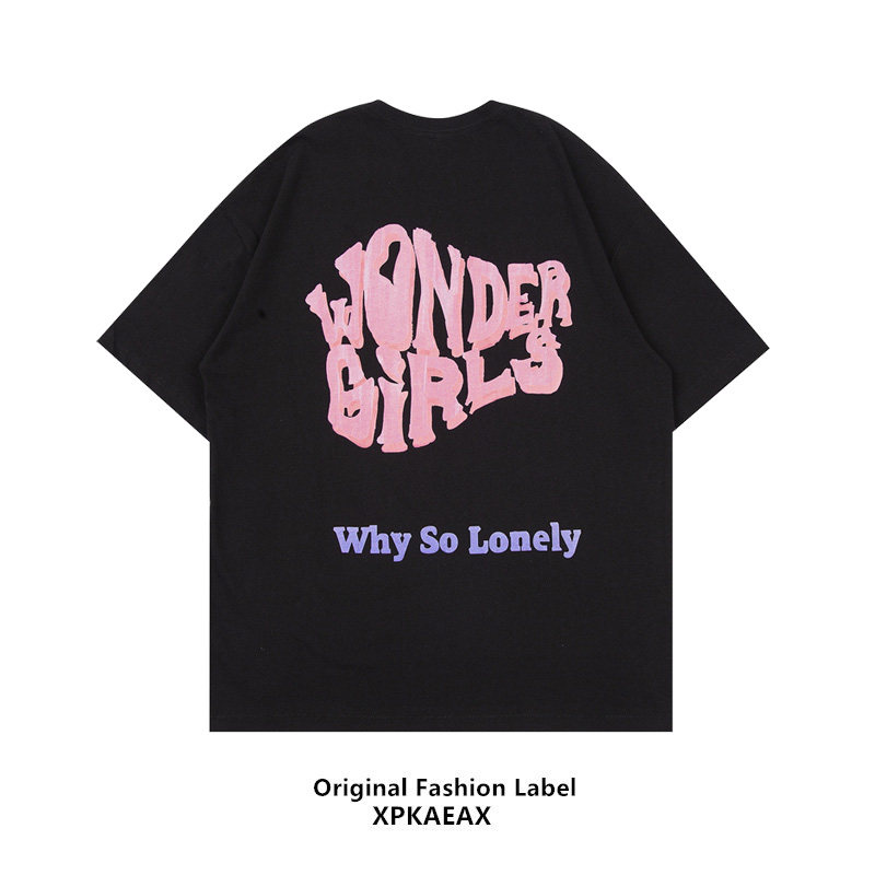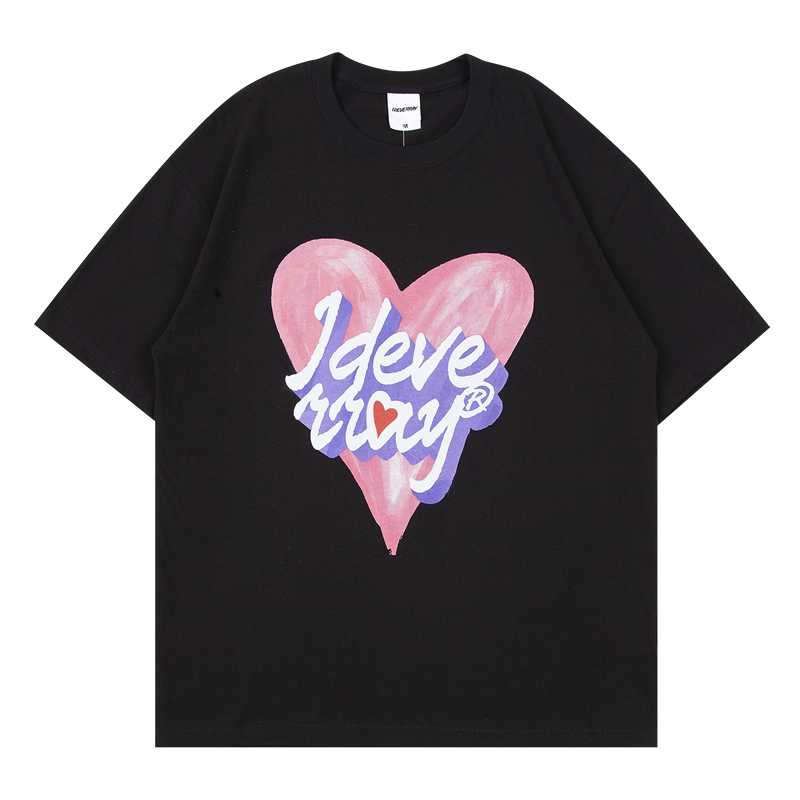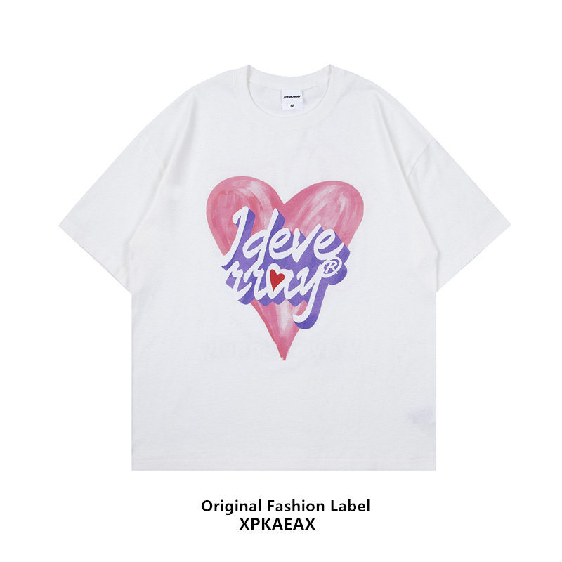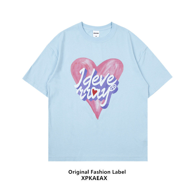 XPKAEAX original Tide Brand Fun Print Short Sleeve Couples Love T-shirt Men and Women bf Harajuku Wind Loose Half Sleeve