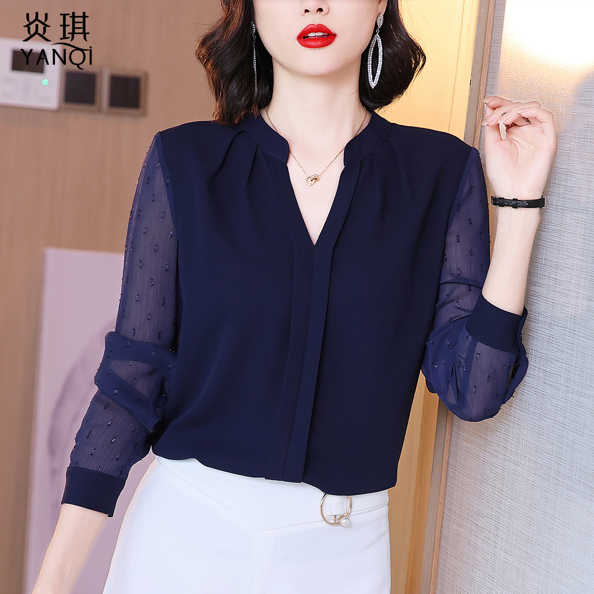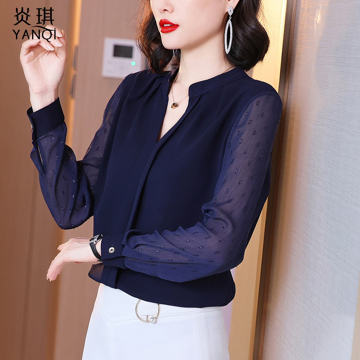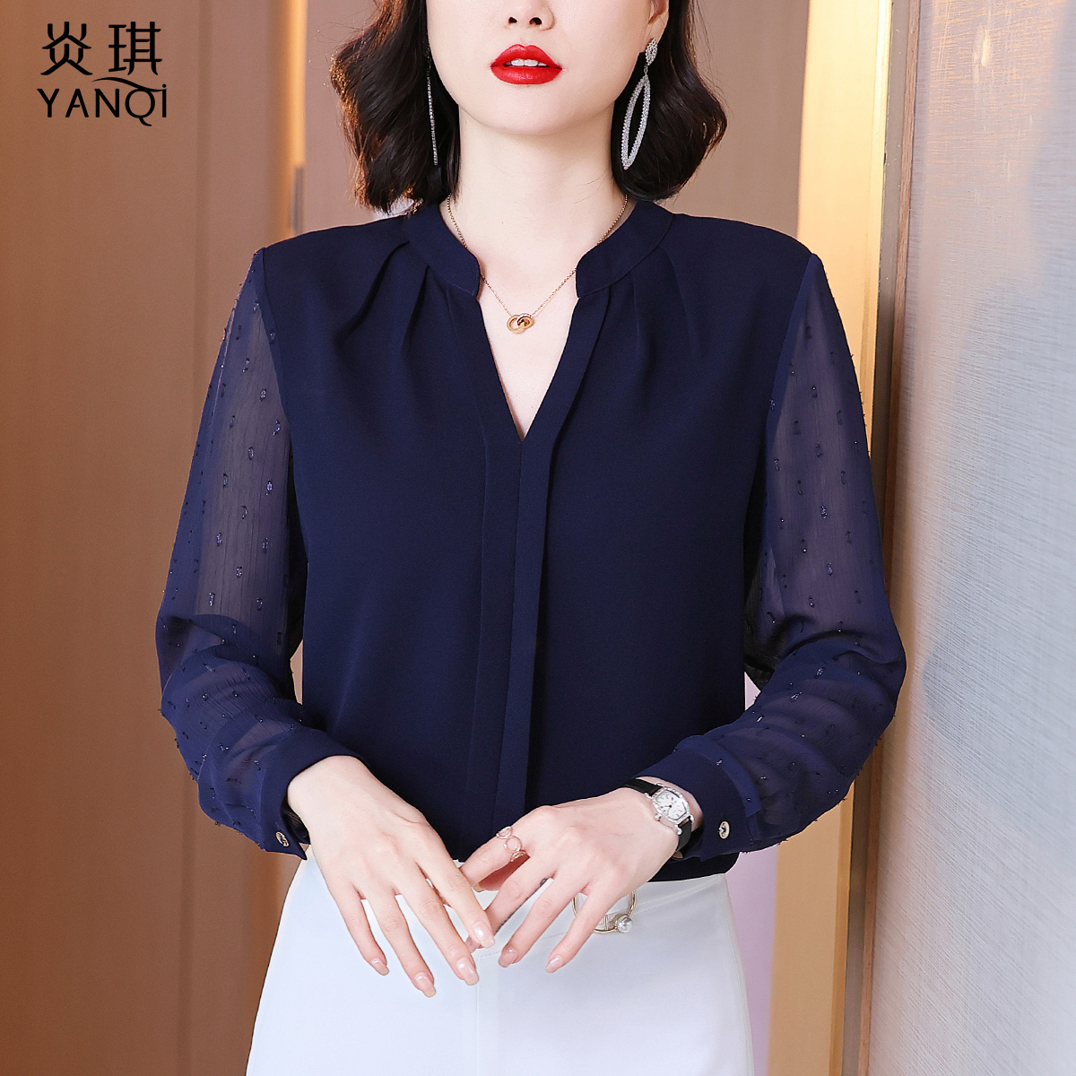2021 autumn new women's long-sleeved V-neck chiffon shirt design sense niche chic top foreign style small shirt wild