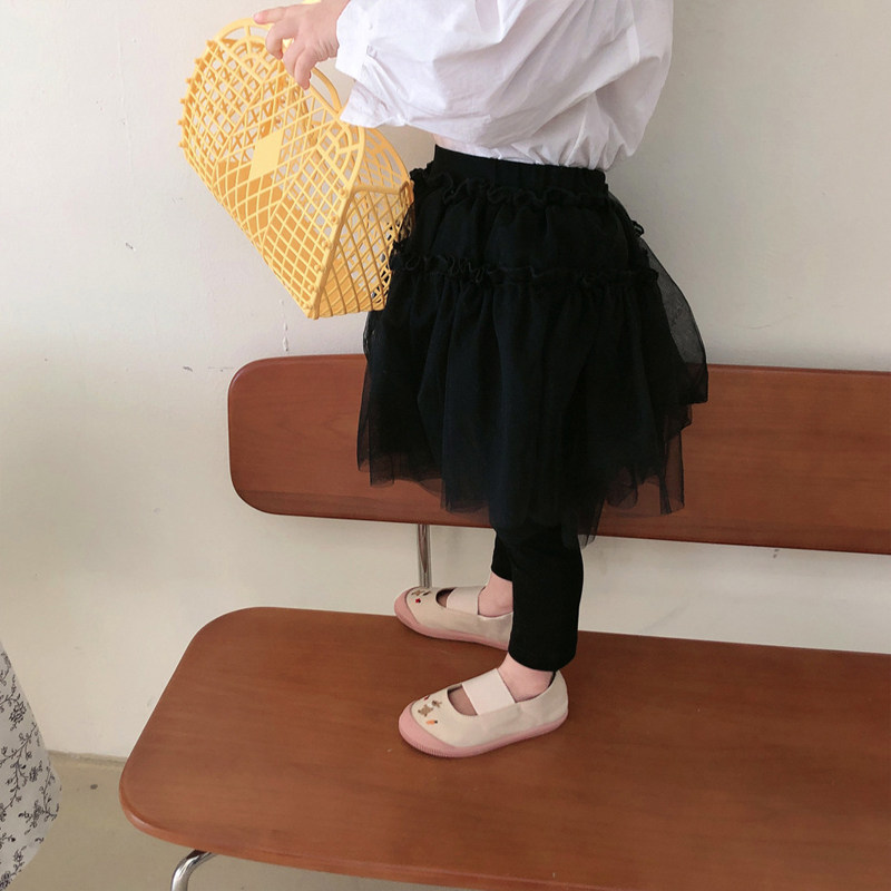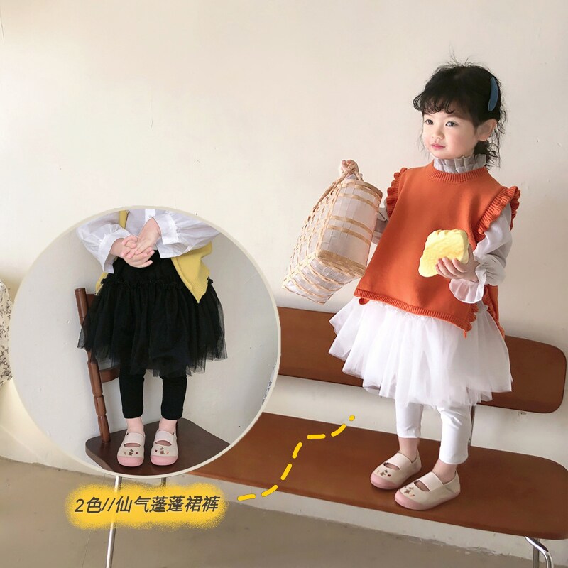 Children's online dress pants 2021 spring and autumn girls fake two fluffy dress inside lap pants Korean version Baby polo pants