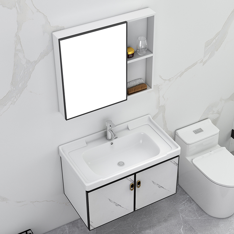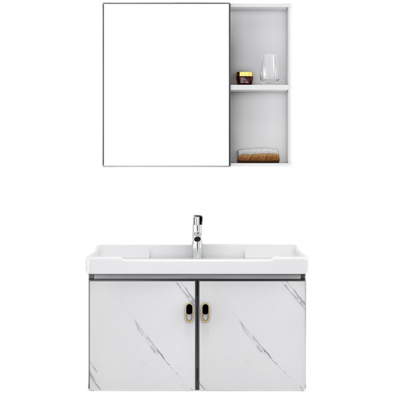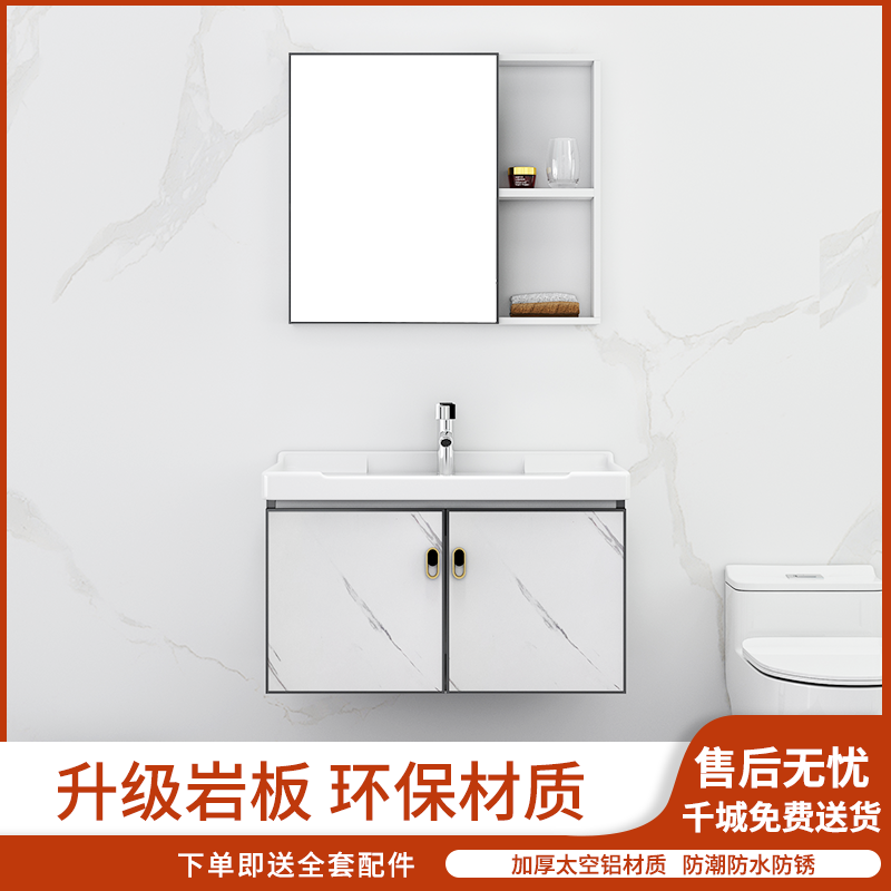 Hanging the wall of Northern European Space Aluminum Bathroom Cabinet Ceramic Basin Plate Wash Face Balcony Basin Basin Table Small Household Mirror Cabinet Combination