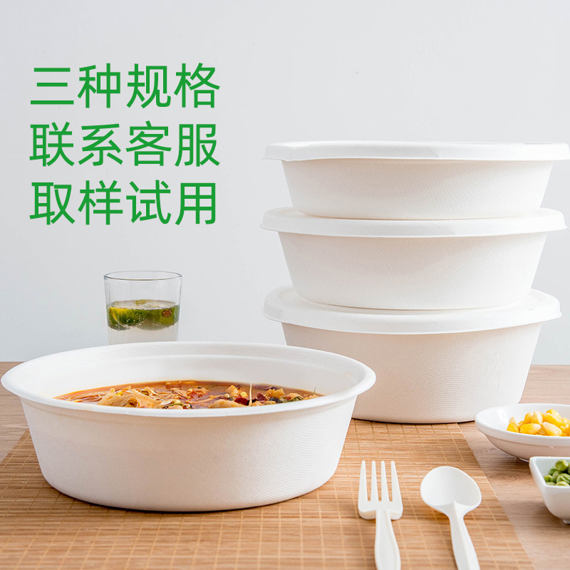 Wood Western Fields 2000ml Cane Pulp Degradable Disposable Bowls Public Round Acid Vegetable Fish Hair Blood Wann Pack Cartridges Lid