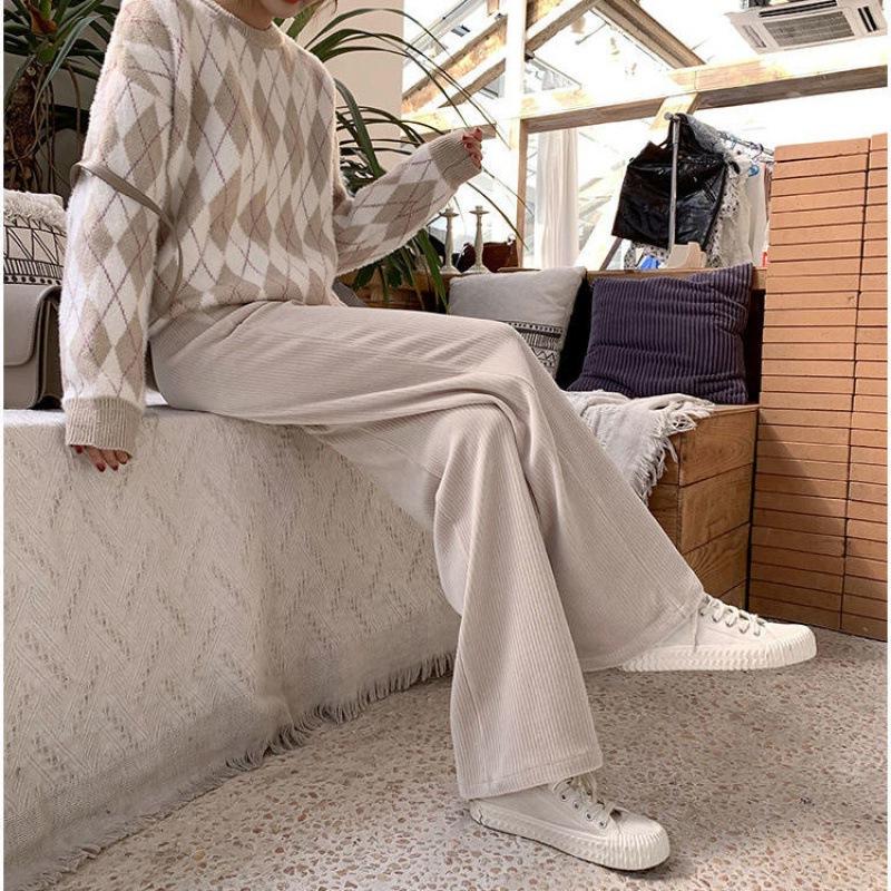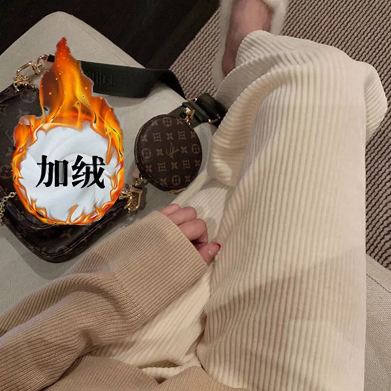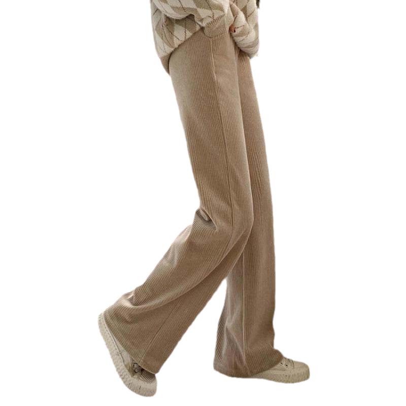 Casual wide-leg pants women's winter and spring high-waist mopping pants corduroy plus velvet thickened loose slim vertical trousers