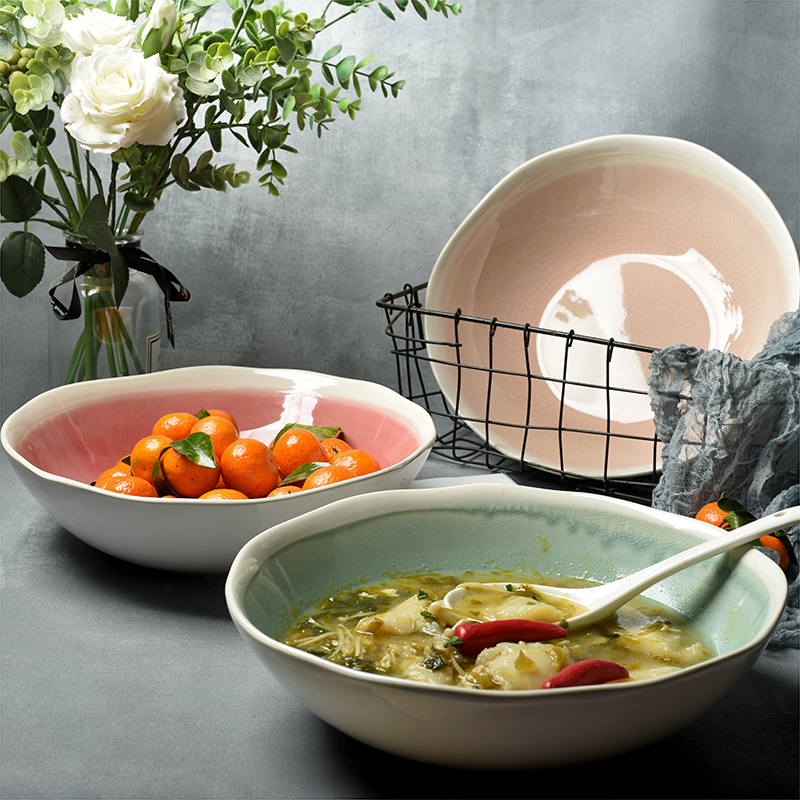 Creative ceramic big soup bowl salad bowl bowl of bowl of fish Japanese cafeteria hot pot bowl flaws