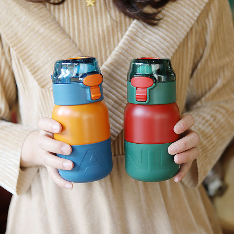 Cute girl heart big belly thermos cup simple ins children's duckbill straw water cup small mini portable cup