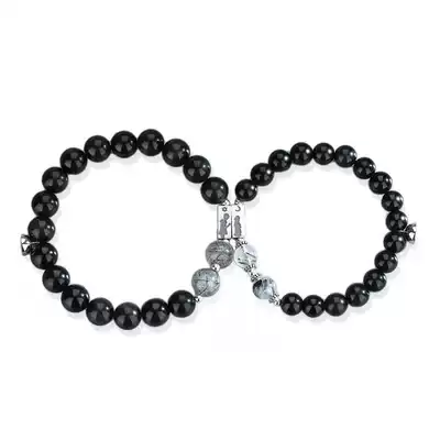 Magnetic suction sterling silver handstring obsidian couple hand a female male attraction magnet lettering gift niche magnet