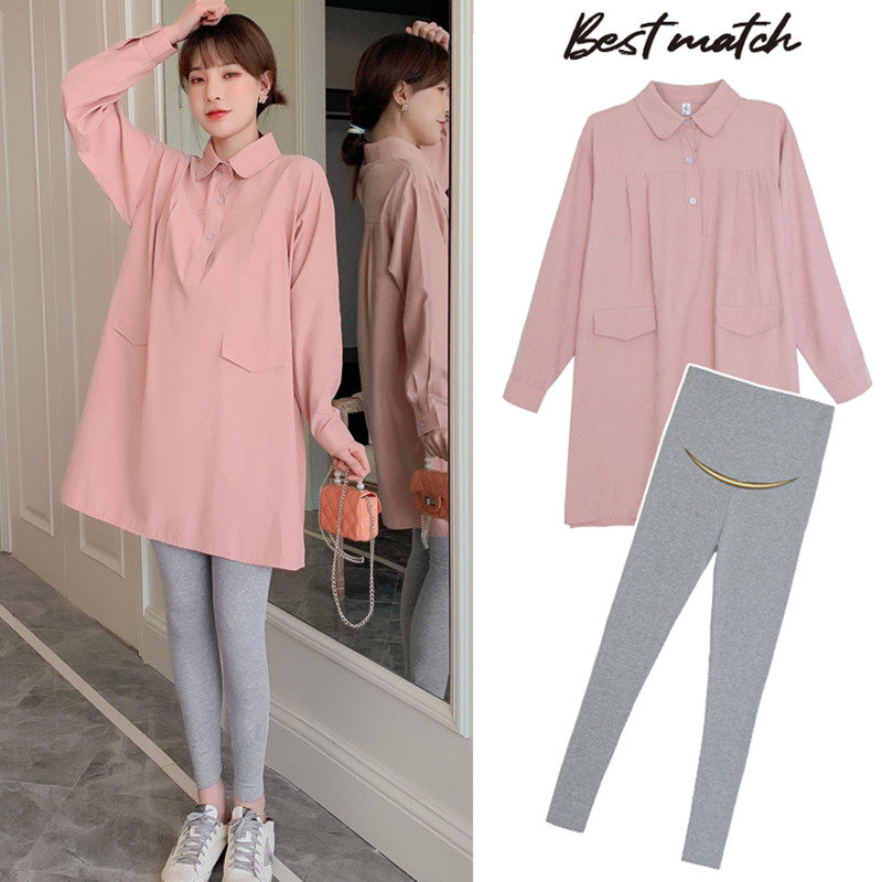 Pregnancy Woman Dress Spring Clothing Fashion style 2022 new Korean version of pregnant woman Ocean dress with long version of spring and autumn relaxation Chauma suit