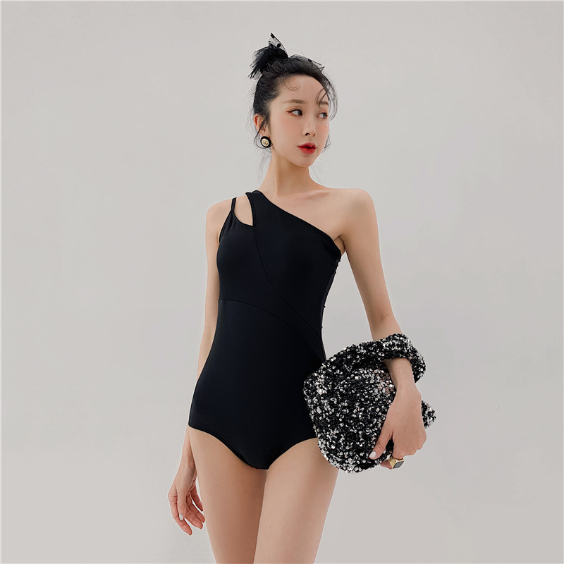 Princess Surana one-piece swimsuit female conservative thin belly cover small chest Black triangle sexy hot spring bathing suit