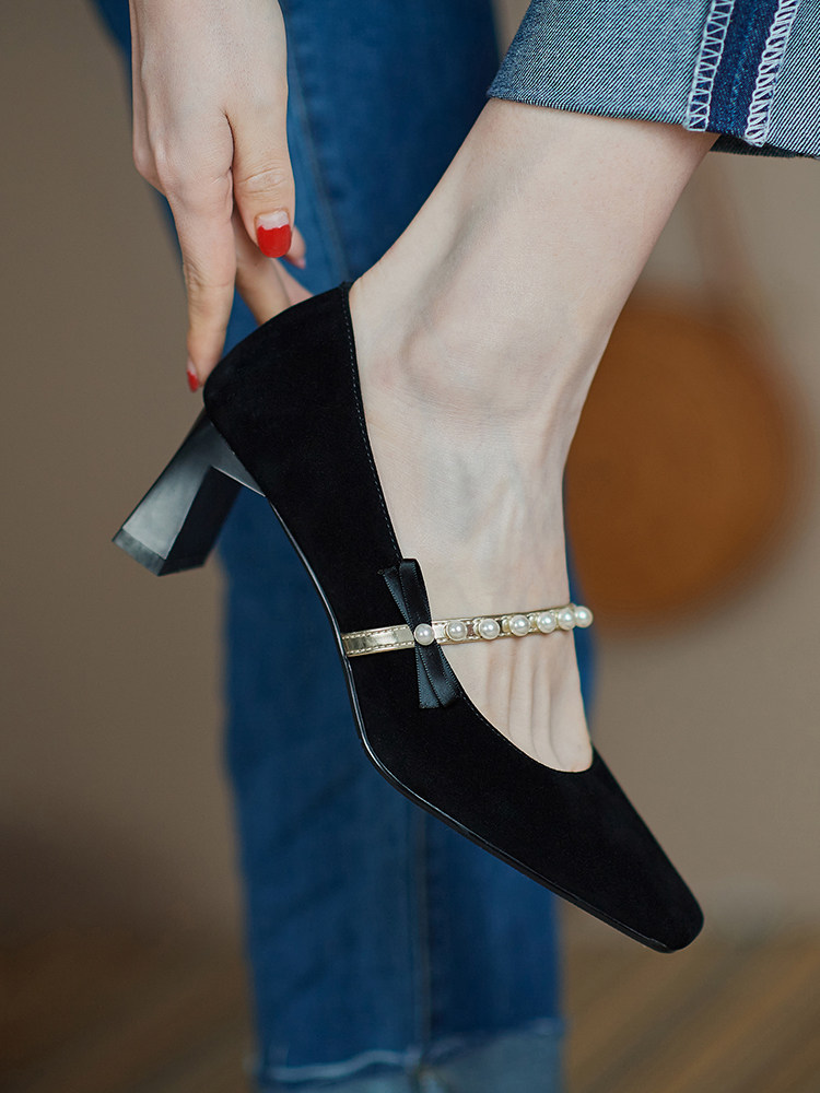 Givenivan early spring with new "g" out of love ~ not dropping with @ crude heel high heels female bow tie square head