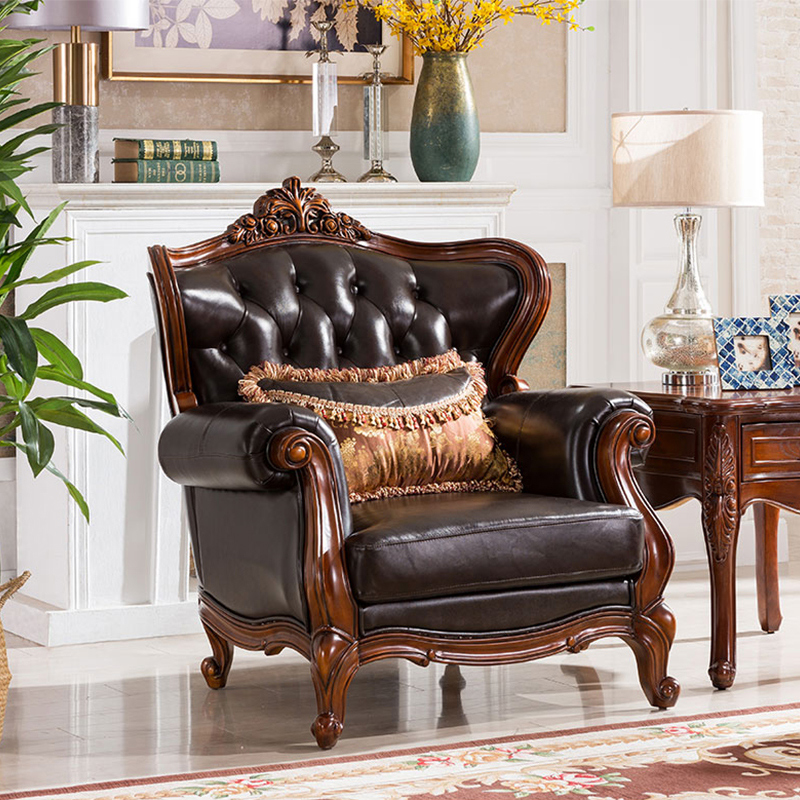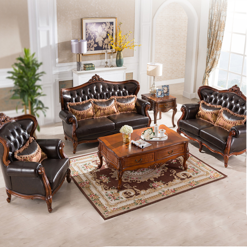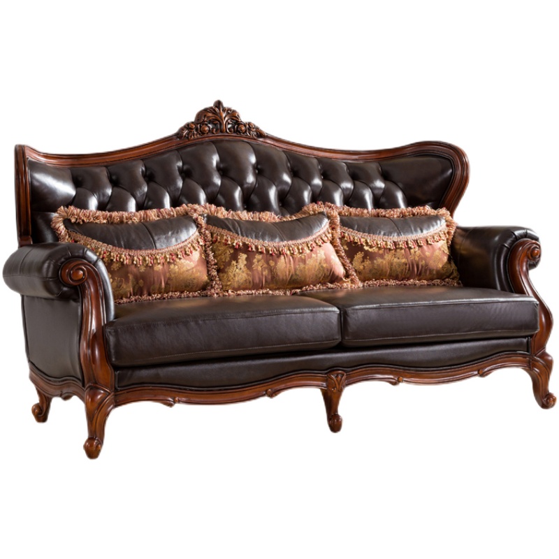 American solid wood sofas European-style retro sofa 1 2 3 Composition Villa Home Innate cow leather Artisanal Engraving