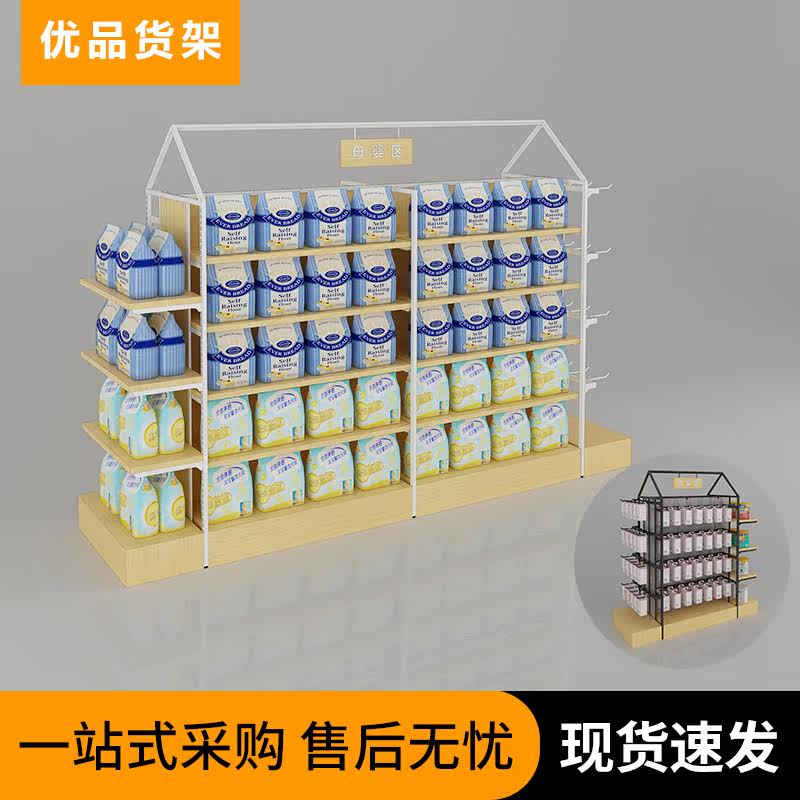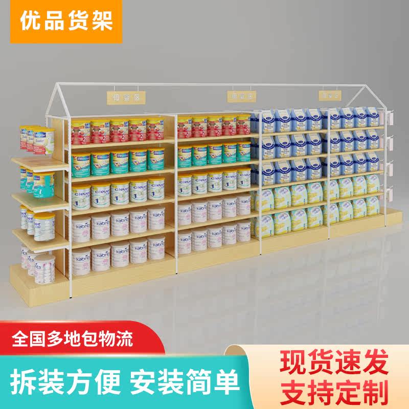 Mother and baby store shelves display cabinets Milk powder pregnant and baby children's clothing diapers Multi-layer multi-function island cabinet hook rack