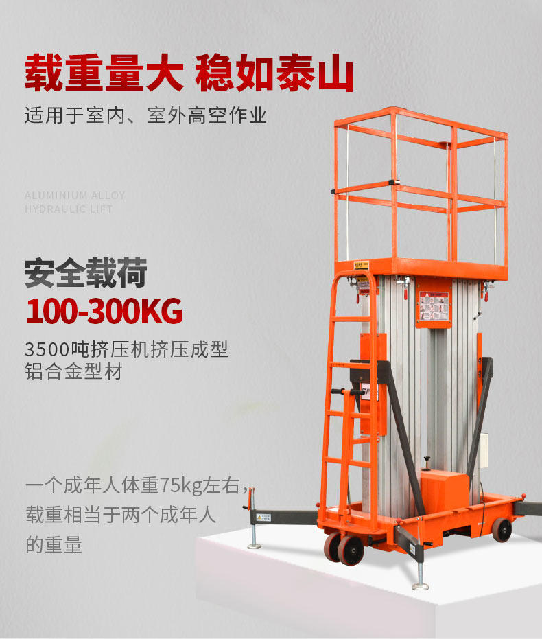 Single column load 100KG lifts 4m single column load 130KG lifts 8 m single column load 130KG lifts 10 m single column load 150KG lifts 6 m double column load 150