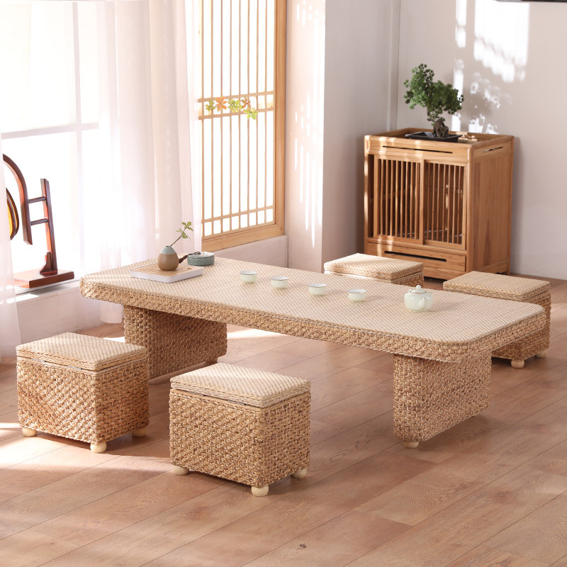Day-style rattan chic tea table tatami dwarf table sitting room home living room Home New Chinese meditation Balcony Tea Table and chairs