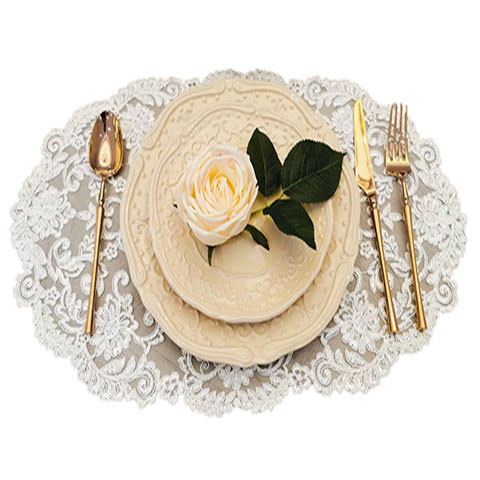 Velvet Lace Embroidered Border Oval Placemat Coaster Food